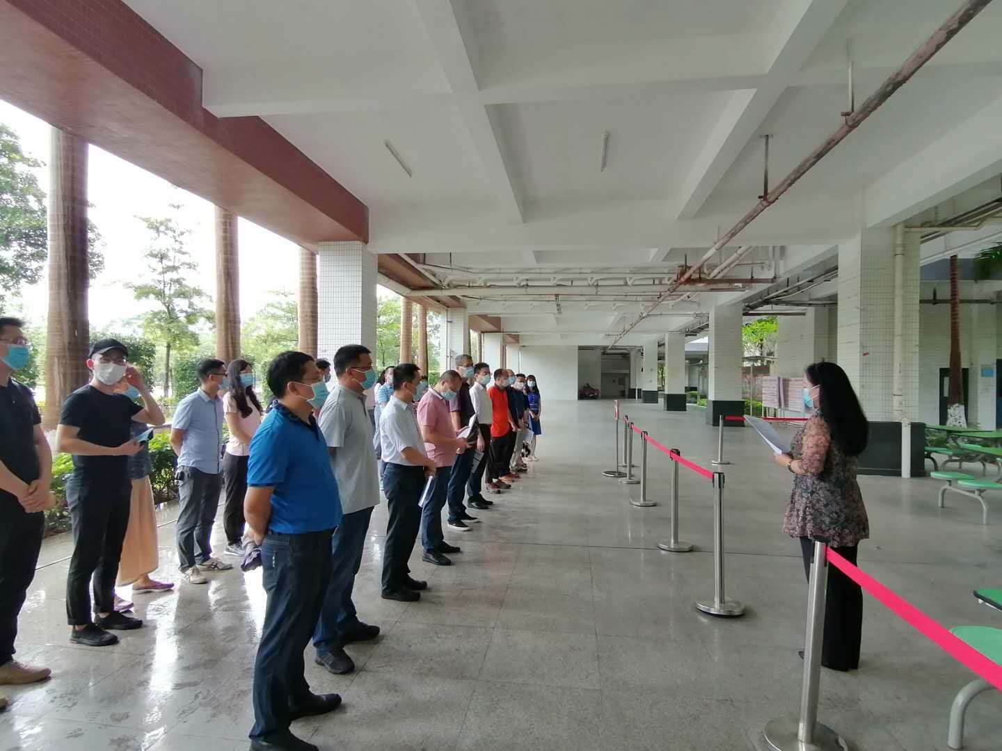 在互联网金融与信息工程公司党总支书记朱小焱宣读完演练流程安排后,伟德国际1946辅导员冯晓骏、财经与新传媒公司辅导员钟子斌、工商管理公司辅导员朱旖玲、工商管理公司党总支副书记朱培松、互联网金融与信息工程公司党总支副书记丘志君先后主持了员工晨午晚检、饭堂就餐、毕业生领取毕业证书、员工教室上课发现员工发热处置、卫生所发热病人预检分诊及疑似病人转诊等五个场景的演练讲解,相关工作人员严格按照疫情防控应急演练流程向到场人员作了精彩演练。