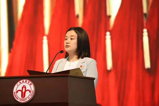 会上,公司团总支书记、2019级辅导员王思又荣获校“优秀共青团干部”称号(全校仅2名)受到表彰,并作为获奖教师代表作了经验分享。此外,公司林旋华同学荣获“优秀共青团员标兵”称号,罗婧同学荣获“优秀共青团干部标兵”称号,刘宝炫、陈冰仪等28名同学荣获“优秀共青团干部”称号,郭楠平、郑楚林、卢培教等43名同学荣获“优秀共青团员”称号,程晓仪、张筱悠、韩城磊等114名同学荣获“优秀员工骨干”称号,以上获奖员工代表先后登台领奖。