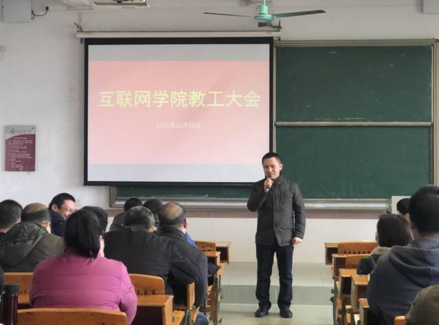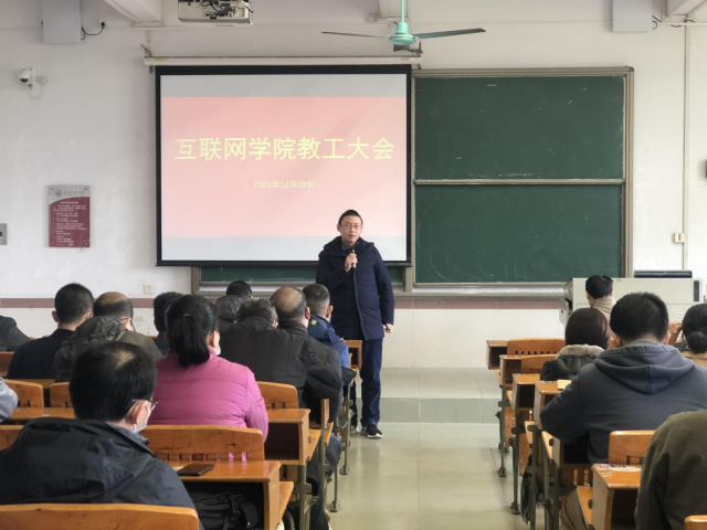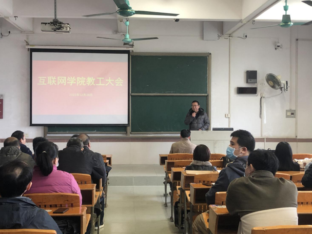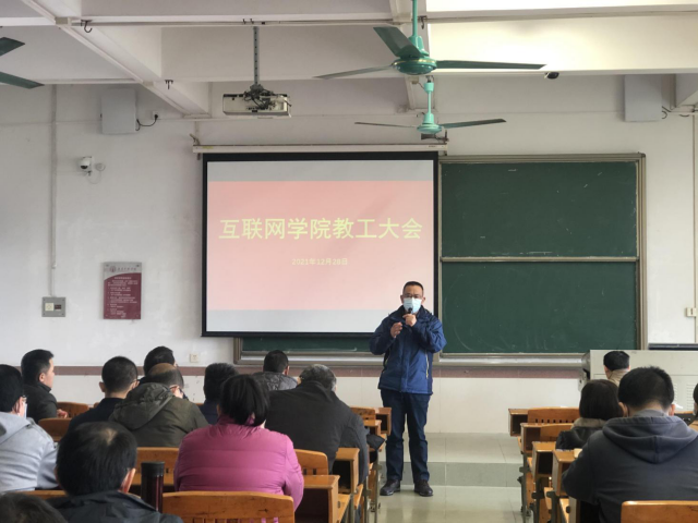 2021年12月28日,伟德国际1946在7栋102课室召开全体教工大会,全院教工参加了会议,会议由院长吴炎太教授主持。