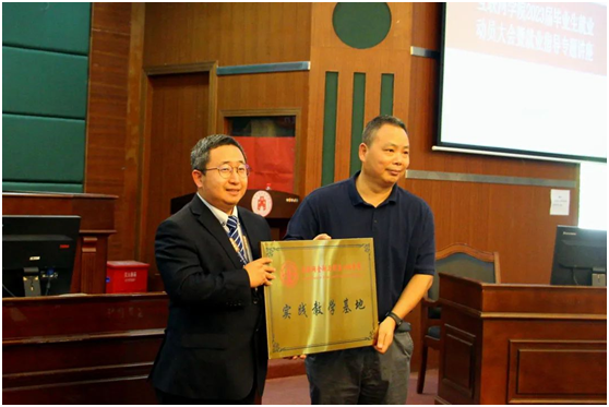 会上,公司党总支书记胡小波为国海证券股份有限公司(广东分公司)授予“实践教学基地”牌匾,期盼校企双方能够在人才培养、实习、就业等方面深入合作。