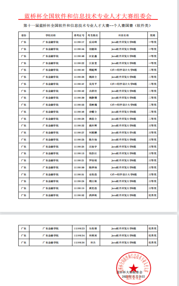 互联网金融与信息工程公司全国软件大赛“蓝桥杯”荣誉一览表