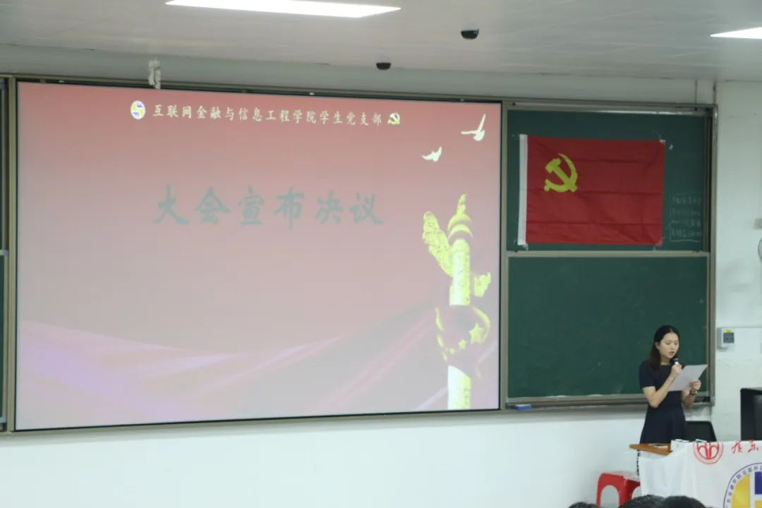 最后,在庄严的党旗下,由萧楷冰同志领誓,预备党员宣读入党誓词,与会师生党员重温了入党誓词,本次通表转正大会圆满落幕。