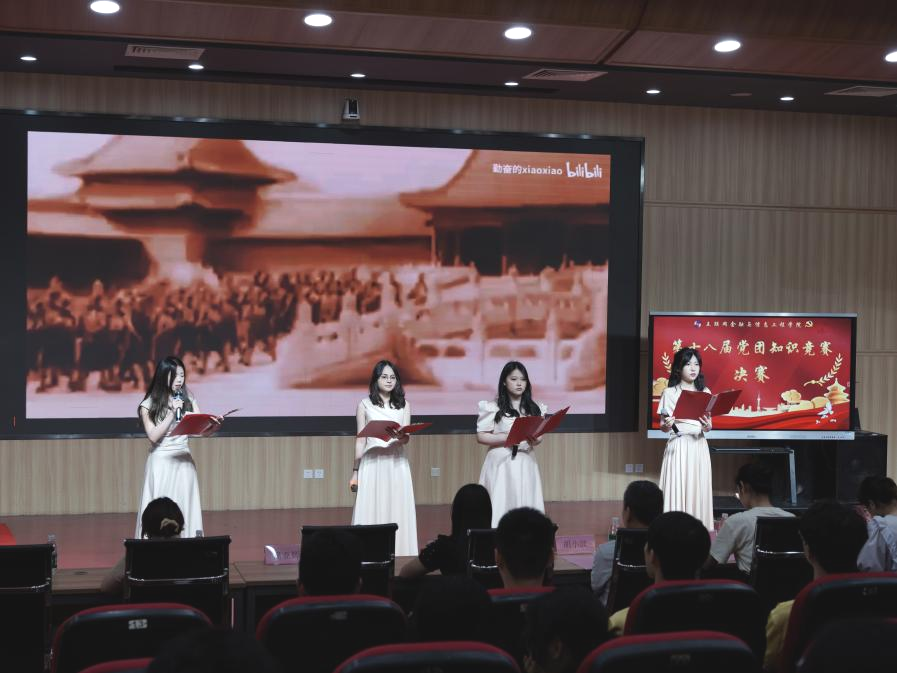 为深入学习贯彻习近平新时代中国特色社会主义思想,进一步丰富公司学子的精神文化生活,引导广大青年知史爱党,伟德国际1946于5月29日在广州校区北阶103举办了第十八届以“以青春的名义,追寻党团里的精神星芒”为主题的党团知识竞赛决赛。互联网金融与信息工程公司党委书记胡小波,副书记蔡秋华,辅导员钟培权、陈家如、陈兴、赵重阳、刘艳等几位老师出席本次党团知识竞赛。