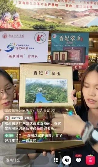 7月10日至16日,实践队分别对凯达茶叶、客情食品有限公司开展了多场直播,她们整理产品,调试设备,准备话术,调整价格优惠,为企业开展首场直播做好了准备。
