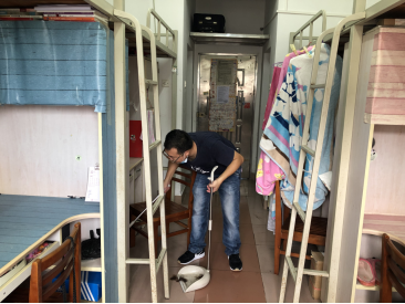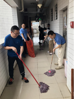 活动中,在朱小焱书记的安排带领下,全体党员同志经宿管员测量体温后进入毕业生宿舍区域,逐间逐间打扫员工宿舍阳台、室内过道、卫生间的卫生,有的同志负责扫地,有的同志负责拖地,有的同志则负责擦窗户和抹桌椅,并做到尽量不动员工宿舍内的物品。经过2个多小时的辛苦劳作,30多间毕业生宿舍整洁有序,焕然一新。