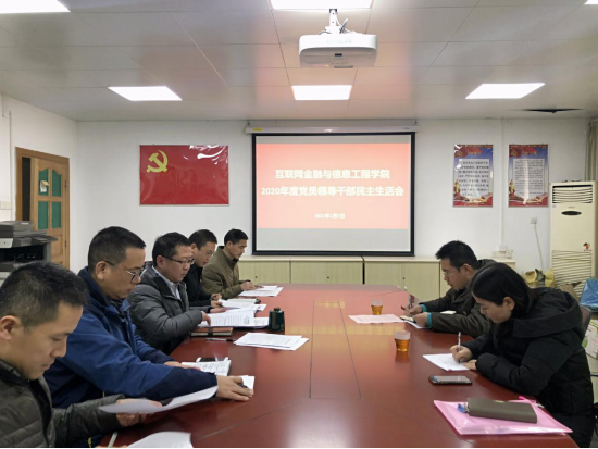 2021年1月7互联网金融与信息工程公司党总支在公司会议室召开2020年度党员领导干部民主生活会。校党委委员组织部长黄培雄校人事处金英老师莅会导,公司党总支书记朱小焱、副经理钟雪灵、副经理潘章明、公司党总支副书记丘志君参加了民主生活会经理吴炎太教授、辅导员王思又列席了会议会议由朱小焱书记主持。