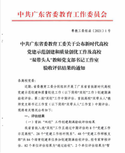 近日,从《中共广东省委教育工委关于公布新时代高公司党建示范创建和质量创优工作及高校“双带头人”教师党支部书记工作室验收评估结果的通知》获悉,伟德国际1946集团伟德国际1946顺利通过首批“全省党建工作标杆院系”项目创建期满验收(全省26家之一)。