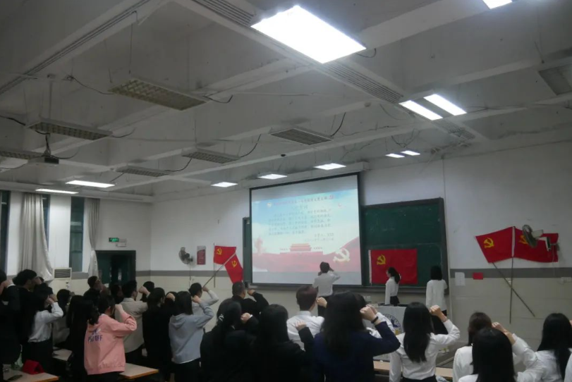 最后,在庄严的党旗下,由马立涛同志领誓,预备党员宣读入党誓词,与会师生党员重温了入党誓词,本次通表转正大会圆满结束。